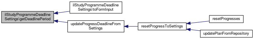 Here is the caller graph for this function:| ilStudyProgrammeDeadlineSettings::getDeadlinePeriod | ( | ) |