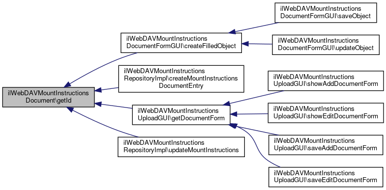 Here is the caller graph for this function:| ilWebDAVMountInstructionsDocument::getId | ( | ) |