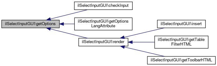 Here is the call graph for this function:| ilSelectInputGUI::getOptions | ( | ) |