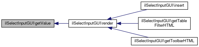 Here is the call graph for this function:| ilSelectInputGUI::getValue | ( | ) |