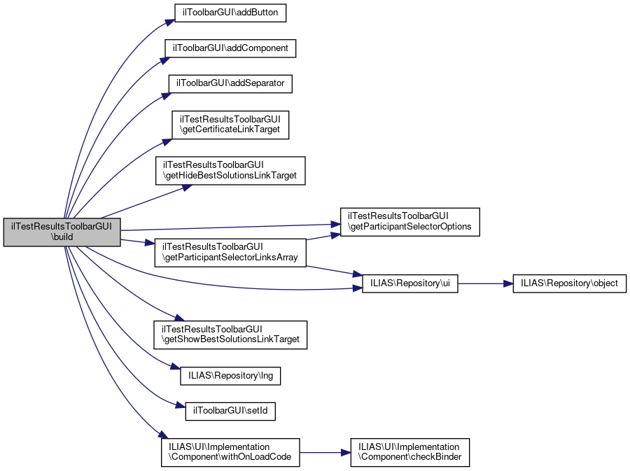 Here is the call graph for this function:| ilTestResultsToolbarGUI::build | ( | ) |