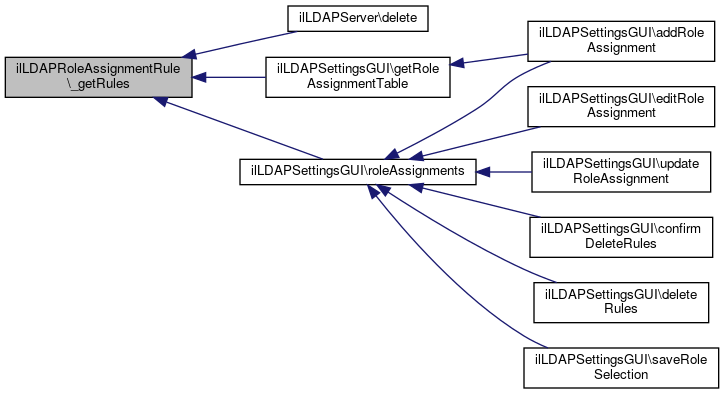 Referenced by ilLDAPSettingsGUI\confirmDeleteRules(), ilLDAPSettingsGUI\deleteRules(), ilLDAPSettingsGUI\editRoleAssignment(), ilLDAPRoleAssignmentRules\getAssignmentsForCreation(), ilLDAPRoleAssignmentRules\getAssignmentsForUpdate(), ilLDAPSettingsGUI\loadRoleAssignmentRule(), and ilLDAPSettingsGUI\roleAssignments().