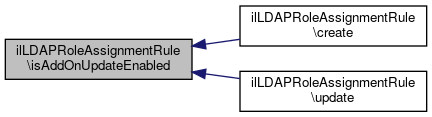 Here is the caller graph for this function:| ilLDAPRoleAssignmentRule::isAddOnUpdateEnabled | ( | ) |