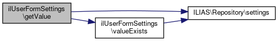 Here is the call graph for this function:| ilUserFormSettings::getValue | ( | string | $a_option | ) |