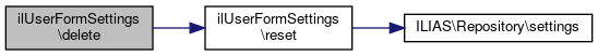 Here is the call graph for this function:| ilUserFormSettings::delete | ( | bool | $a_reset = true | ) |