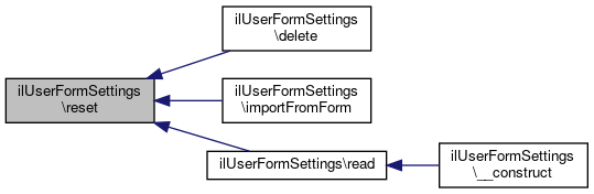 Here is the caller graph for this function:| ilUserFormSettings::reset | ( | ) |
