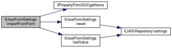 Here is the call graph for this function:| ilUserFormSettings::exportToForm | ( | ilPropertyFormGUI | $a_form, |
