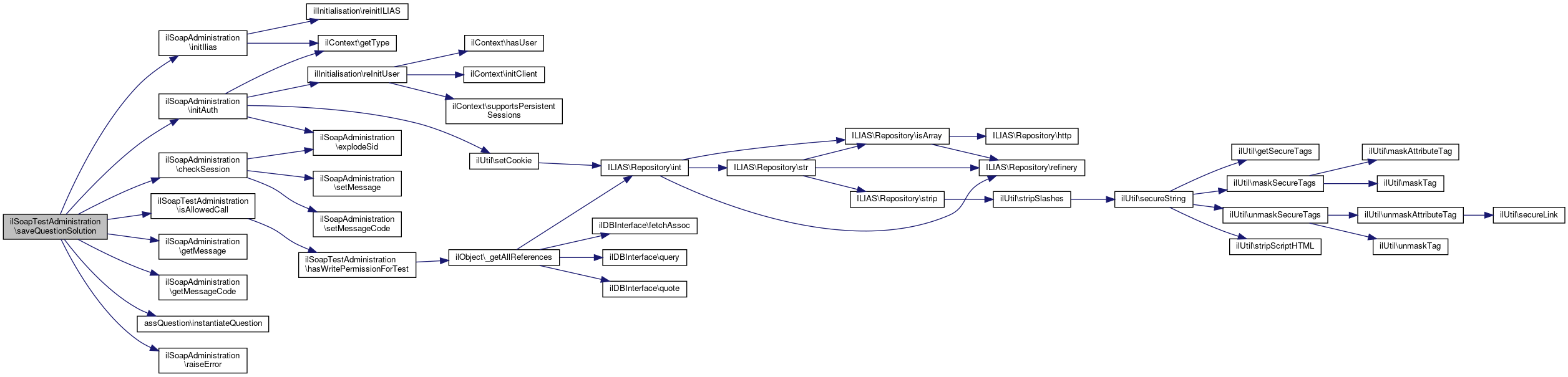 Here is the call graph for this function:| ilSoapTestAdministration::saveQuestionSolution | ( | string | $sid, |