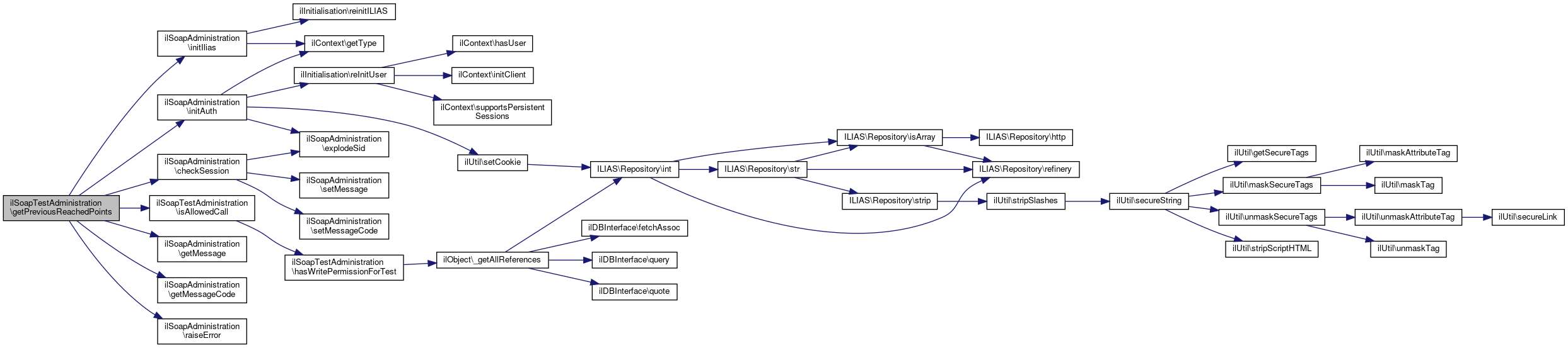 Here is the call graph for this function:| ilSoapTestAdministration::getPreviousReachedPoints | ( | string | $sid, |
