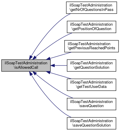 Here is the caller graph for this function:| ilSoapTestAdministration::isAllowedCall | ( | string | $sid, |