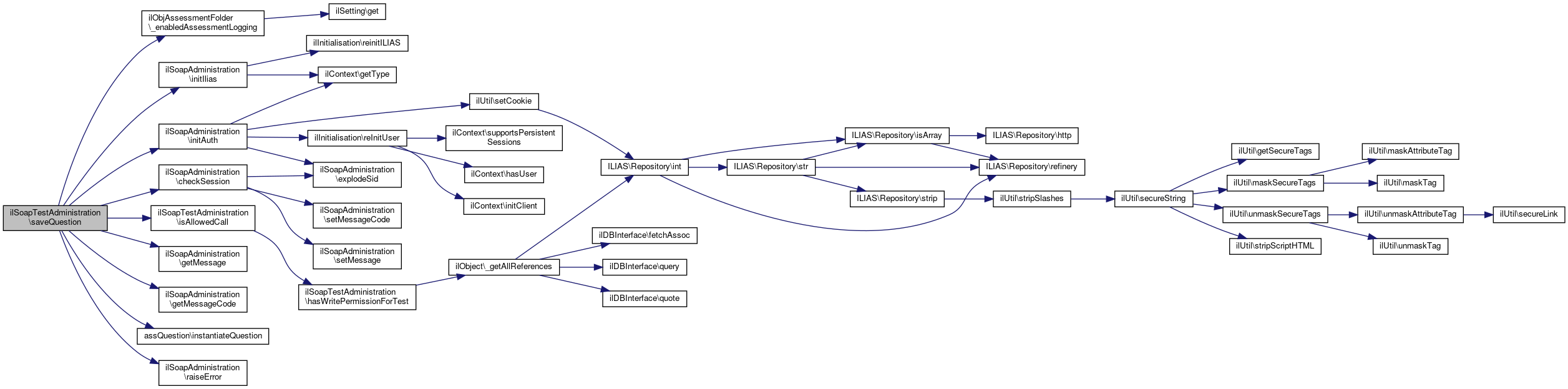 Here is the call graph for this function:| ilSoapTestAdministration::saveQuestion | ( | string | $sid, |