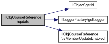 Here is the call graph for this function:| ilObjCourseReference::update | ( | ) |