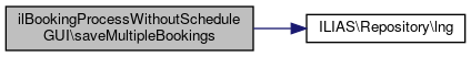 Here is the call graph for this function:| ilBookingProcessWithoutScheduleGUI::saveMultipleBookings | ( | ) |