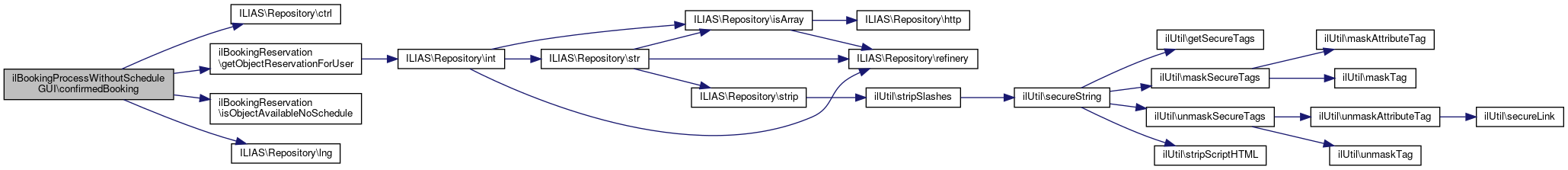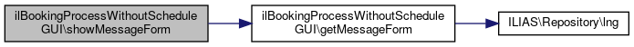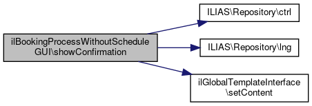 Here is the call graph for this function:| ilBookingProcessWithoutScheduleGUI::confirmedBooking | ( | $message = "" | ) |