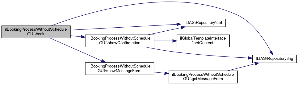 Here is the call graph for this function:| ilBookingProcessWithoutScheduleGUI::book | ( | ) |
