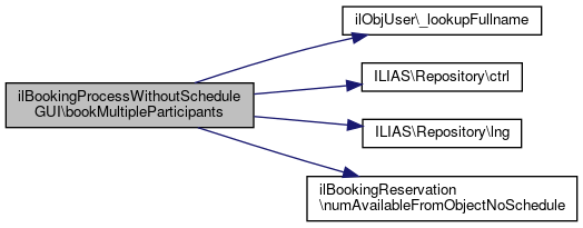 Here is the call graph for this function:| ilBookingProcessWithoutScheduleGUI::bookMultipleParticipants | ( | ) |