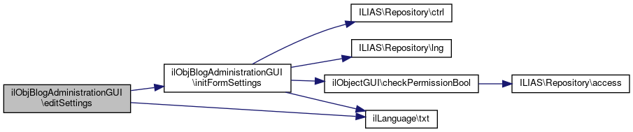 References ilObjectGUI\$ctrl, ilObjectGUI\checkPermission(), editSettings(), initFormSettings(), and ILIAS\Repository\lng().