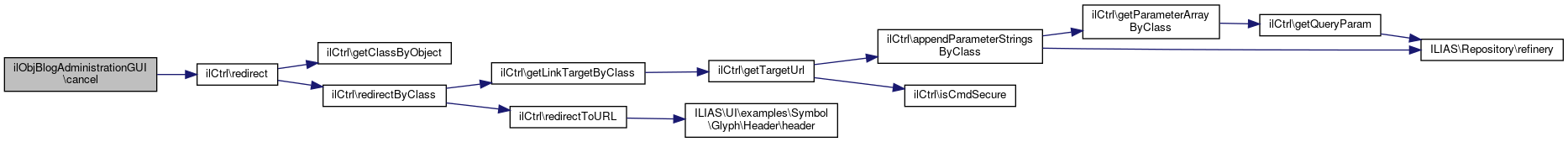 Here is the call graph for this function:| ilObjBlogAdministrationGUI::cancel | ( | ) |