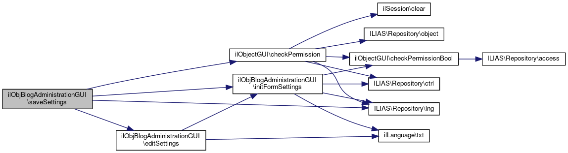 Here is the caller graph for this function:| ilObjBlogAdministrationGUI::saveSettings | ( | ) |