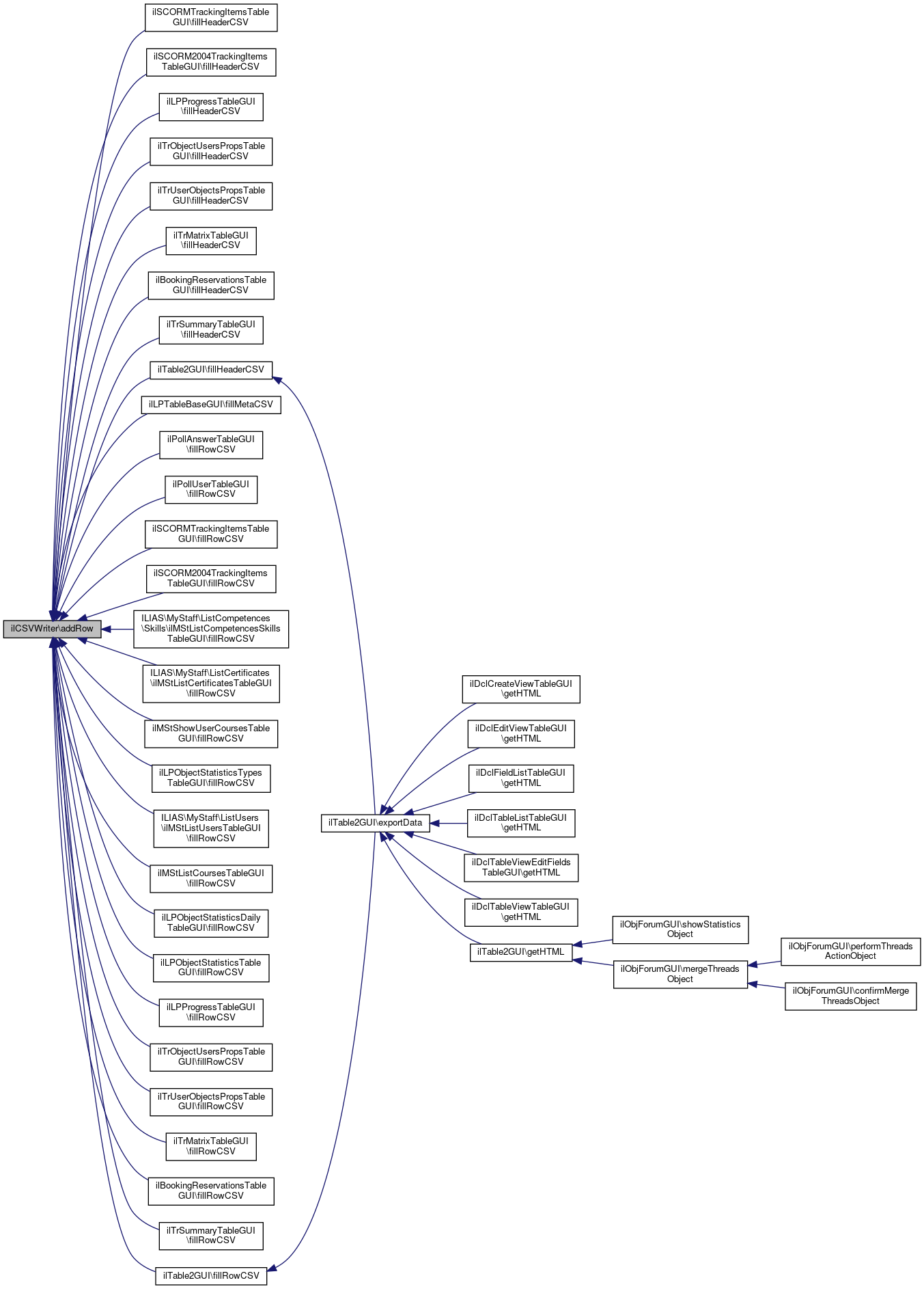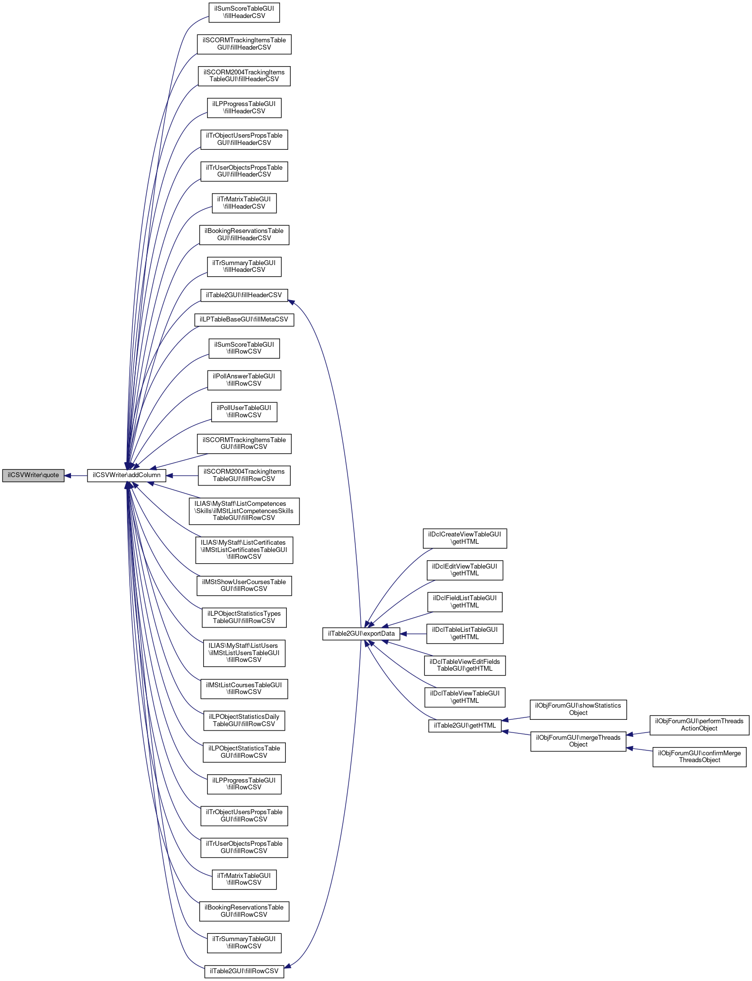 Referenced by ilSumScoreTableGUI\fillHeaderCSV(), ilSCORMTrackingItemsTableGUI\fillHeaderCSV(), ilSCORM2004TrackingItemsTableGUI\fillHeaderCSV(), ilLPProgressTableGUI\fillHeaderCSV(), ilTrObjectUsersPropsTableGUI\fillHeaderCSV(), ilTrUserObjectsPropsTableGUI\fillHeaderCSV(), ilTrMatrixTableGUI\fillHeaderCSV(), ilBookingReservationsTableGUI\fillHeaderCSV(), ilTrSummaryTableGUI\fillHeaderCSV(), ilTable2GUI\fillHeaderCSV(), ilLPTableBaseGUI\fillMetaCSV(), ilSumScoreTableGUI\fillRowCSV(), ilPollAnswerTableGUI\fillRowCSV(), ilPollUserTableGUI\fillRowCSV(), ilSCORMTrackingItemsTableGUI\fillRowCSV(), ilSCORM2004TrackingItemsTableGUI\fillRowCSV(), ILIAS\MyStaff\ListCompetences\Skills\ilMStListCompetencesSkillsTableGUI\fillRowCSV(), ILIAS\MyStaff\ListCertificates\ilMStListCertificatesTableGUI\fillRowCSV(), ilMStShowUserCoursesTableGUI\fillRowCSV(), ilLPObjectStatisticsTypesTableGUI\fillRowCSV(), ILIAS\MyStaff\ListUsers\ilMStListUsersTableGUI\fillRowCSV(), ilMStListCoursesTableGUI\fillRowCSV(), ilLPObjectStatisticsDailyTableGUI\fillRowCSV(), ilLPObjectStatisticsTableGUI\fillRowCSV(), ilLPProgressTableGUI\fillRowCSV(), ilTrObjectUsersPropsTableGUI\fillRowCSV(), ilTrUserObjectsPropsTableGUI\fillRowCSV(), ilTrMatrixTableGUI\fillRowCSV(), ilBookingReservationsTableGUI\fillRowCSV(), ilTrSummaryTableGUI\fillRowCSV(), and ilTable2GUI\fillRowCSV().