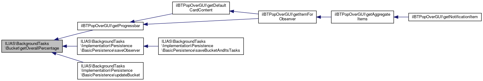 Here is the caller graph for this function:| ILIAS\BackgroundTasks\Bucket::getOverallPercentage | ( | ) |