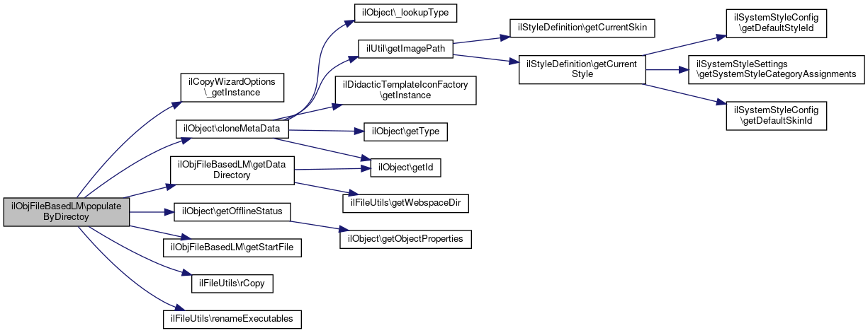 Here is the call graph for this function:| ilObjFileBasedLM::populateByDirectoy | ( | string | $a_dir, |