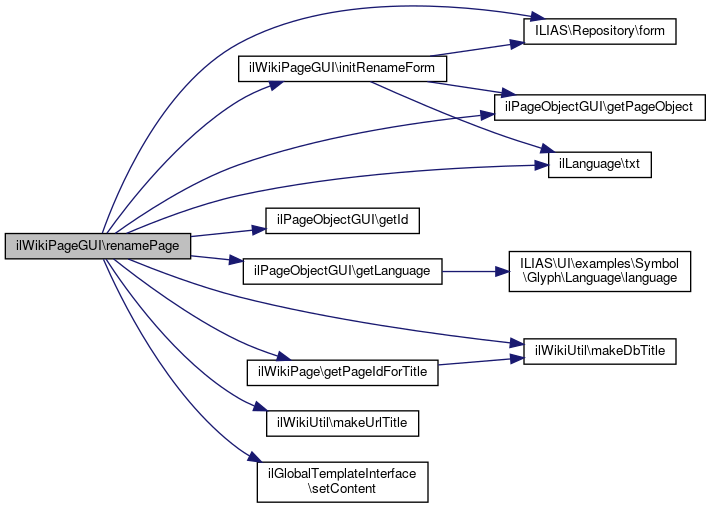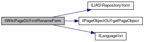 References ilPageObjectGUI\$access, ilPageObjectGUI\$ctrl, ilPageObjectGUI\$lng, ilPageObjectGUI\$tpl, ILIAS\Repository\form(), ilPageObjectGUI\getId(), ilPageObjectGUI\getLanguage(), ilWikiPage\getPageIdForTitle(), ilPageObjectGUI\getPageObject(), initRenameForm(), ilWikiUtil\makeDbTitle(), ilWikiUtil\makeUrlTitle(), ilGlobalTemplateInterface\setContent(), and ilLanguage\txt().