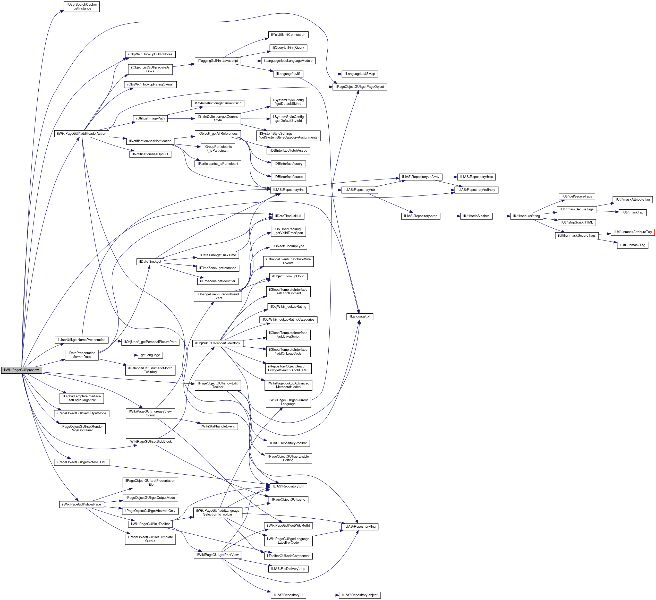 Here is the call graph for this function:| ilWikiPageGUI::preview | ( | ) |