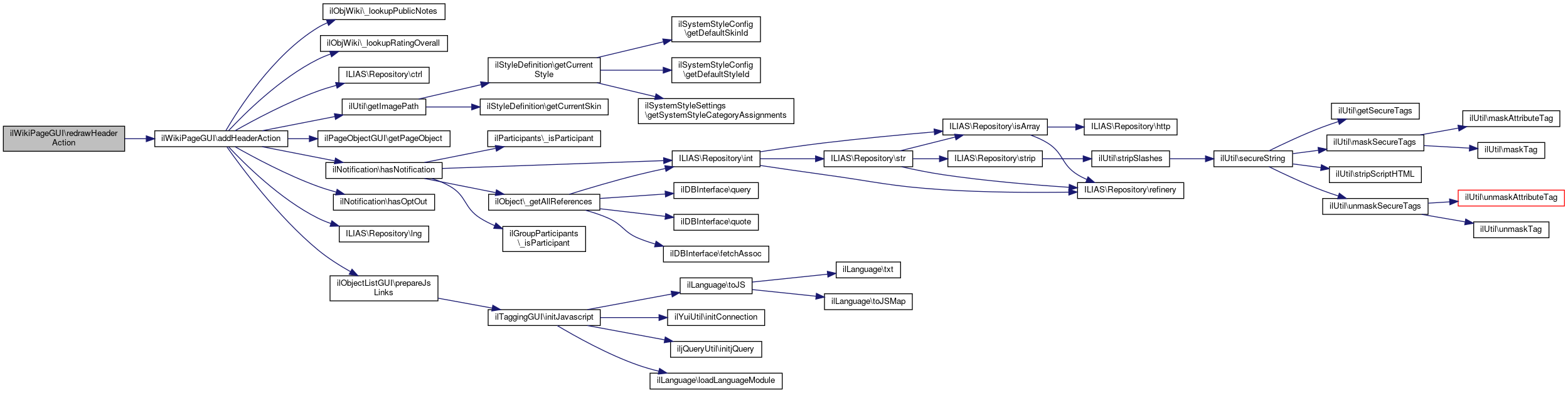Here is the call graph for this function:| ilWikiPageGUI::redrawHeaderAction | ( | ) |