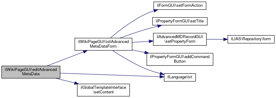 Here is the call graph for this function:| ilWikiPageGUI::updateAdvancedMetaData | ( | ) |