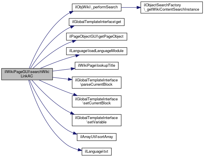 Here is the call graph for this function:| ilWikiPageGUI::searchWikiLinkAC | ( | ) |