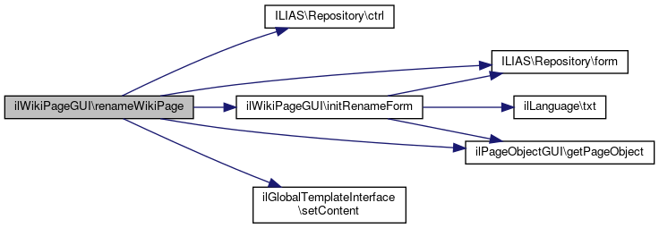 Here is the call graph for this function:| ilWikiPageGUI::renamePage | ( | ) |