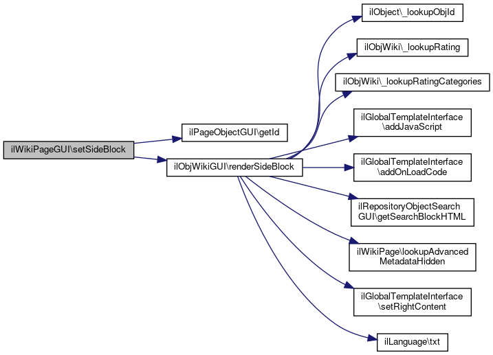 Here is the call graph for this function:| ilWikiPageGUI::setSideBlock | ( | ) |