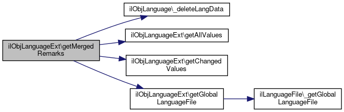 Here is the call graph for this function:| ilObjLanguageExt::getMergedRemarks | ( | ) |