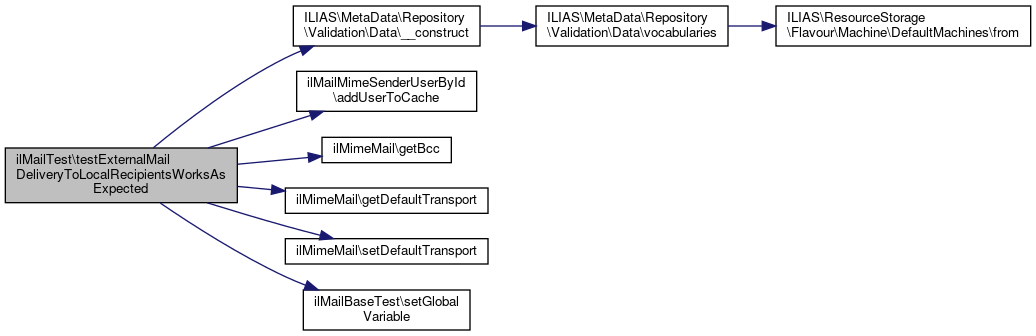 Here is the call graph for this function:| ilMailTest::testExternalMailDeliveryToLocalRecipientsWorksAsExpected | ( | ) |