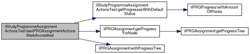 Here is the call graph for this function:| ilStudyProgrammeAssignmentActionsTest::testPRGAssignmentActionsMarkAccredited | ( | ) |