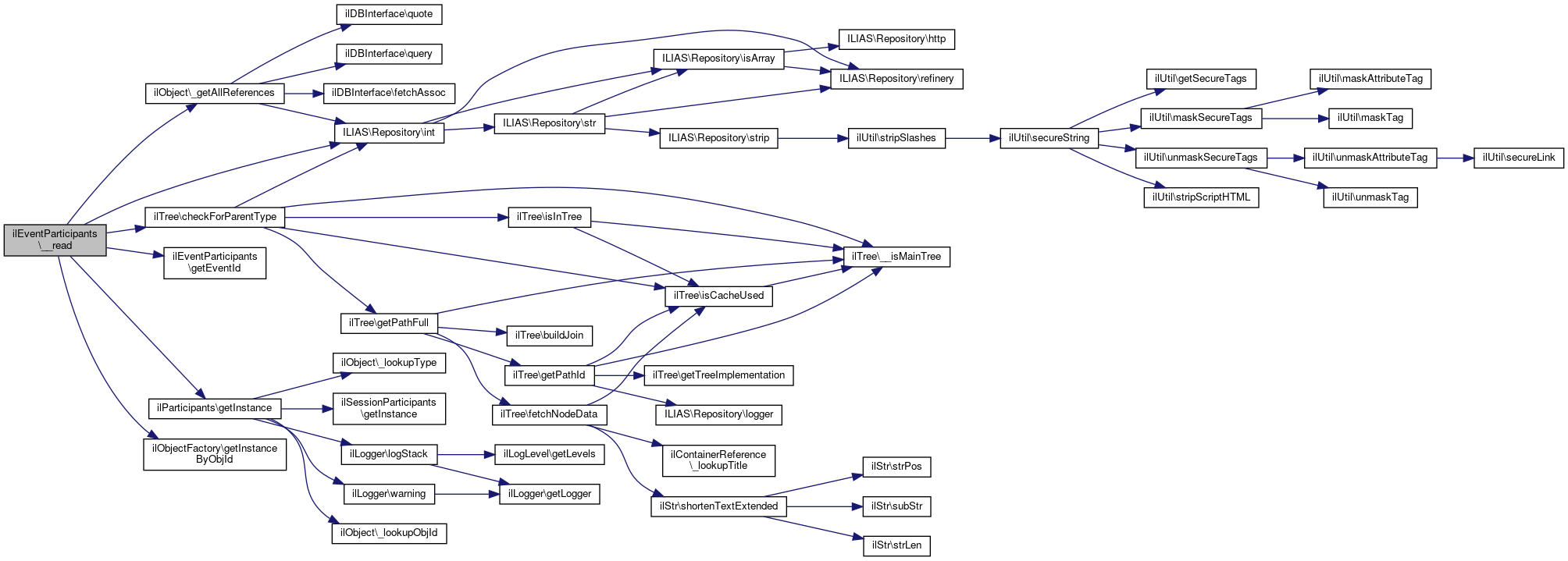 Here is the caller graph for this function:| ilEventParticipants::getParticipatedParticipants | ( | ) |