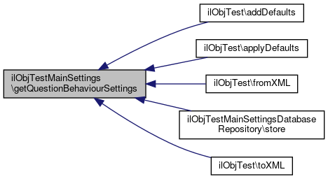 Here is the caller graph for this function:| ilObjTestMainSettings::getQuestionBehaviourSettings | ( | ) |