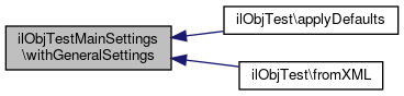 Here is the call graph for this function:| ilObjTestMainSettings::withGeneralSettings | ( | ilObjTestSettingsGeneral | $settings | ) |