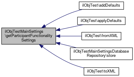 Here is the caller graph for this function:| ilObjTestMainSettings::getParticipantFunctionalitySettings | ( | ) |