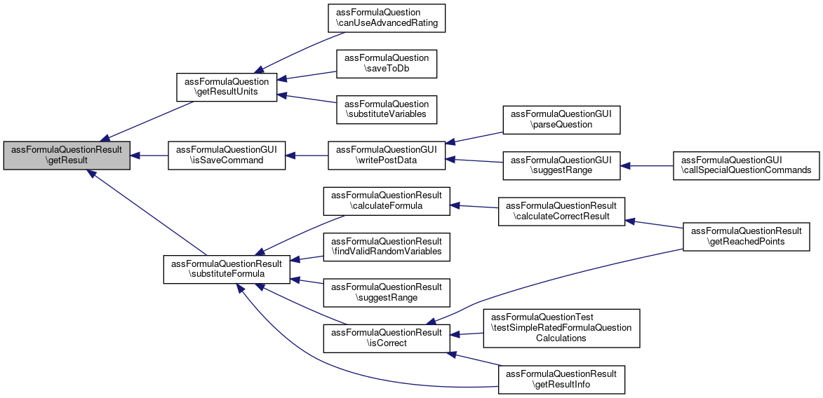 Here is the call graph for this function:| assFormulaQuestionResult::getResult | ( | ) |