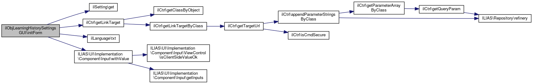 Here is the call graph for this function:| ilObjLearningHistorySettingsGUI::initForm | ( | ) |