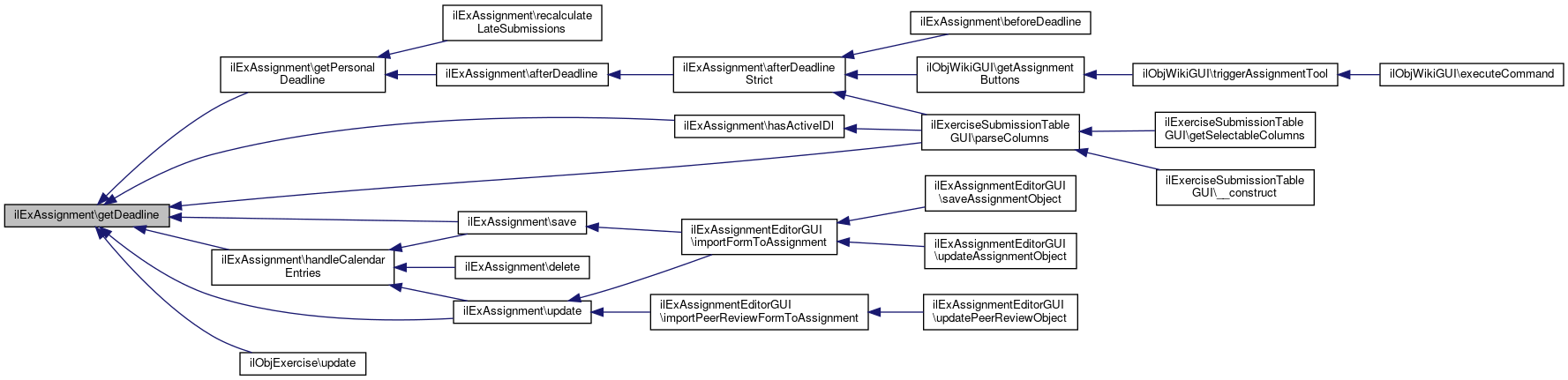 Here is the caller graph for this function:| ilExAssignment::afterDeadline | ( | ) |