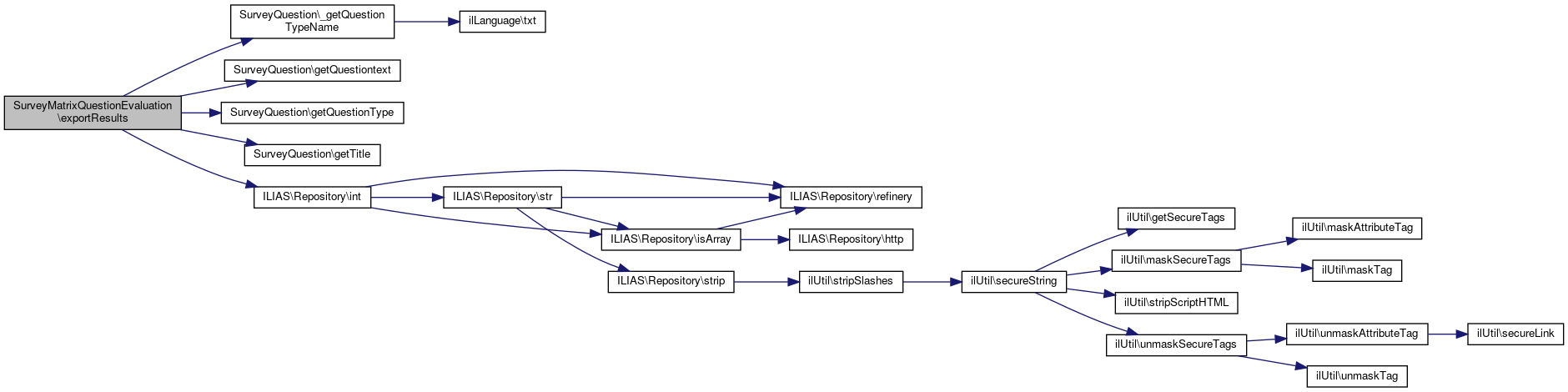 Here is the call graph for this function:| SurveyMatrixQuestionEvaluation::exportResults | ( | $a_results, | |