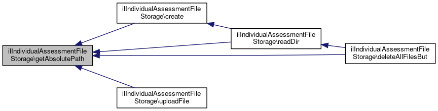 Here is the call graph for this function:| ilIndividualAssessmentFileStorage::getAbsolutePath | ( | ) |