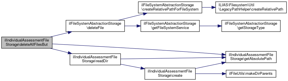Here is the caller graph for this function:| ilIndividualAssessmentFileStorage::deleteAllFilesBut | ( | ?string | $filename | ) |