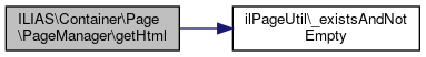 Here is the call graph for this function:| ILIAS\Container\Page\PageManager::getHtml | ( | ) |