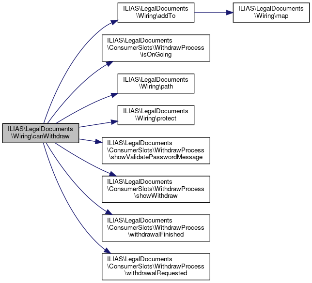 Here is the call graph for this function:| ILIAS\LegalDocuments\Wiring::canWithdraw | ( | WithdrawProcess | $withdraw_process | ) |