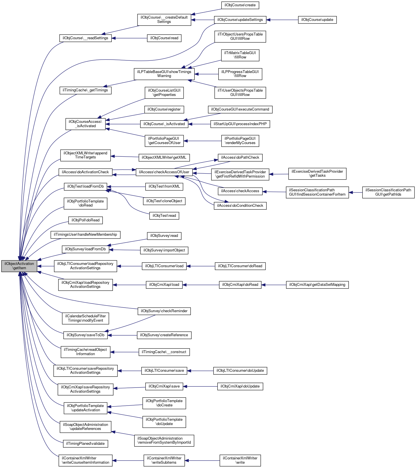 Referenced by ilObjCourse\__readSettings(), ilObjCourseAccess\_isActivated(), ilInfoScreenGUI\addAccessPeriodProperty(), ilInfoScreenGUI\addAvailability(), addListGUIActivationProperty(), ilSoapObjectAdministration\addReferences(), ilObjectXMLWriter\appendTimeTargets(), ilObjSurvey\checkReminder(), ilAccess\doActivationCheck(), ilObjPortfolioTemplate\doRead(), ilObjPoll\doRead(), ilPollStateInfo\isOfflineOrUnavailable(), ilObjTest\loadFromDb(), ilObjSurvey\loadFromDb(), ilObjLTIConsumer\loadRepositoryActivationSettings(), ilObjCmiXapi\loadRepositoryActivationSettings(), ILIAS\Object\Properties\ObjectReferenceProperties\ObjectAvailabilityPeriodPropertiesCachedRepository\retrieveDataForWhereClause(), ilObjLTIConsumer\saveRepositoryActivationSettings(), ilObjCmiXapi\saveRepositoryActivationSettings(), ilObjSurvey\saveToDb(), ilObjTest\storeActivationSettings(), ilObjPortfolioTemplate\updateActivation(), ilObjPollGUI\updateCustom(), ilSoapObjectAdministration\updateReferences(), and ilObjCourse\updateSettings().