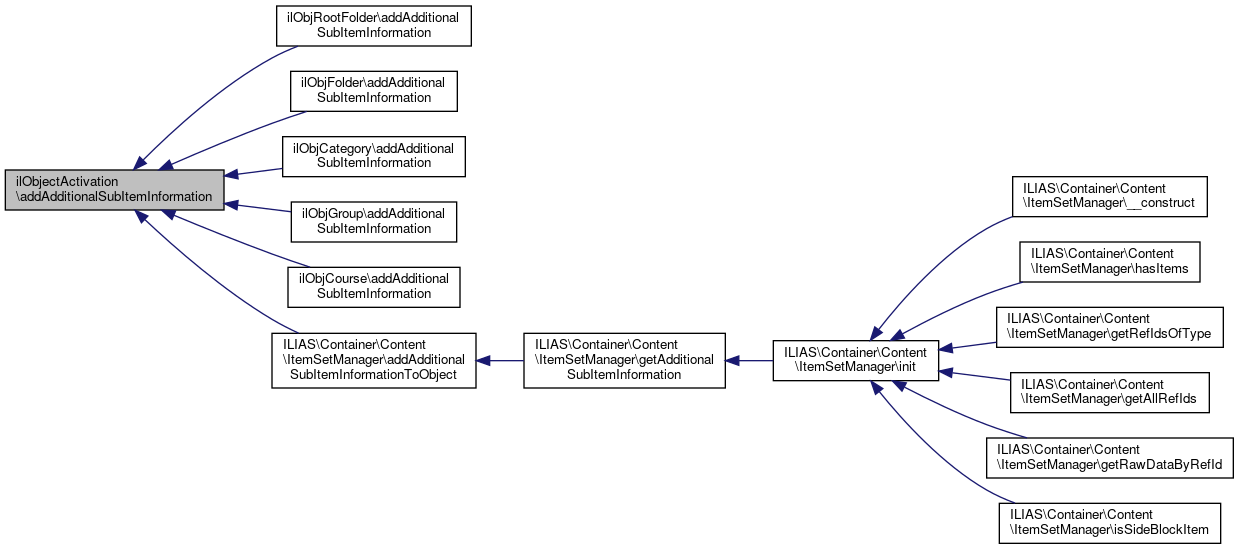 Referenced by ilObjRootFolder\addAdditionalSubItemInformation(), ilObjFolder\addAdditionalSubItemInformation(), ilObjCategory\addAdditionalSubItemInformation(), ilObjGroup\addAdditionalSubItemInformation(), ilObjCourse\addAdditionalSubItemInformation(), and ILIAS\Container\Content\ItemSetManager\addAdditionalSubItemInformationToObject().